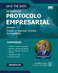 Porque acreditamos no valor da partilha de conhecimento e experiência, convidamo-lo (a) a participar no workshop “Protocolo Empresarial no Século XXI”, que se realizará no próximo dia 19 de março, na Associação Empresarial do Baixo Ave, na Trofa.